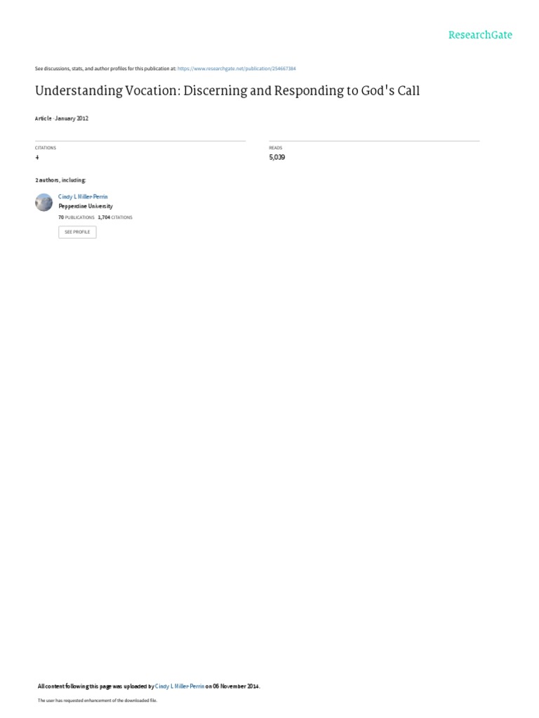 Understanding Vocation: Discerning and Responding To God's Call | PDF ...