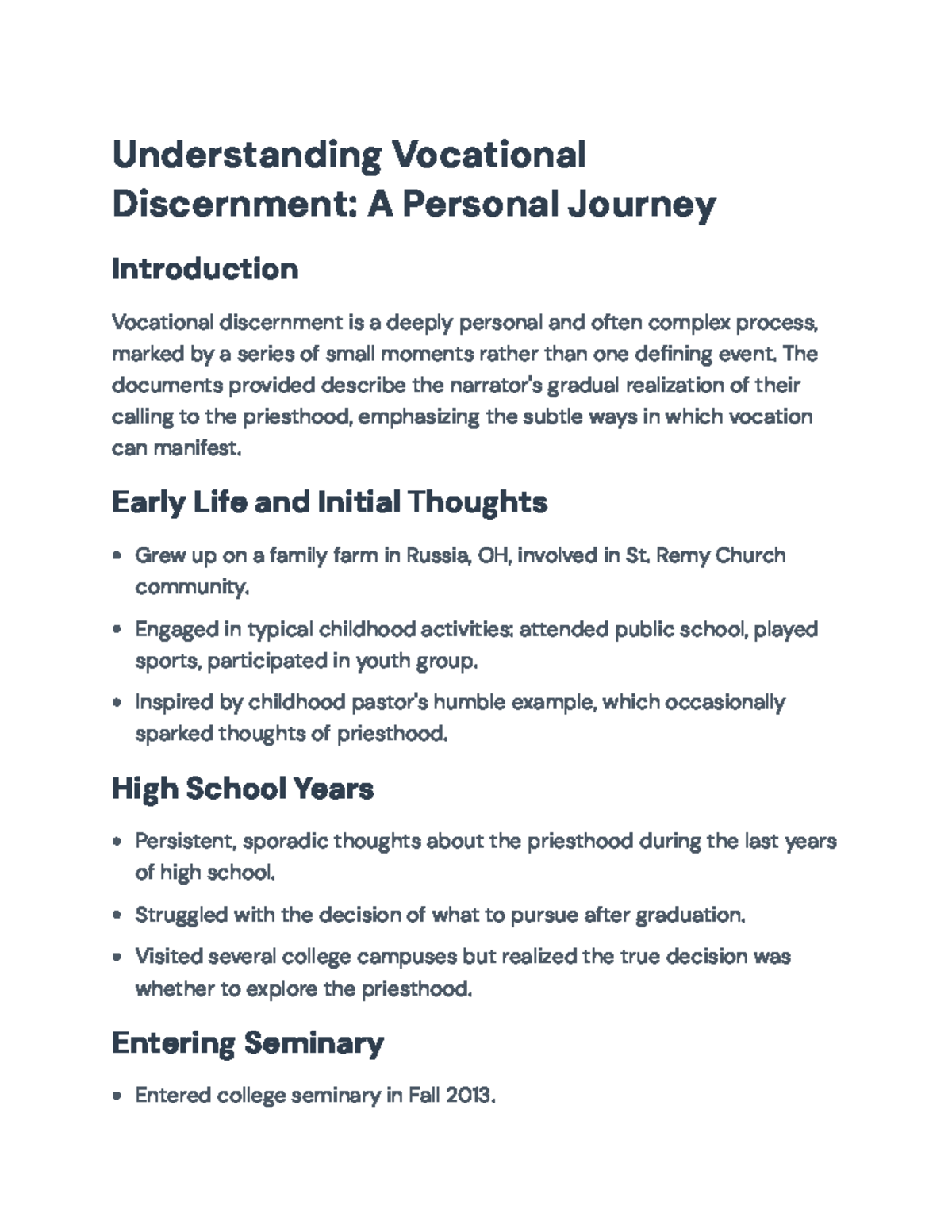 Understanding Vocational Discernment to Priesthood Journey - Studocu