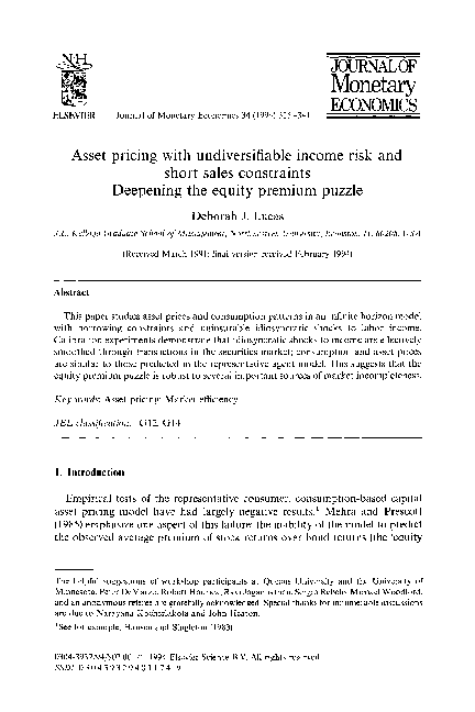 (PDF) Asset pricing with undiversifiable income risk and short sales ...