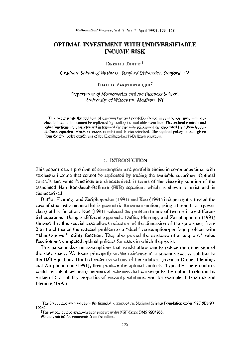 (PDF) Optimal Investment With Undiversifiable Income Risk