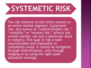Systematic and unsystematic risk. ️ Systematic Risk: Systematic risk ...