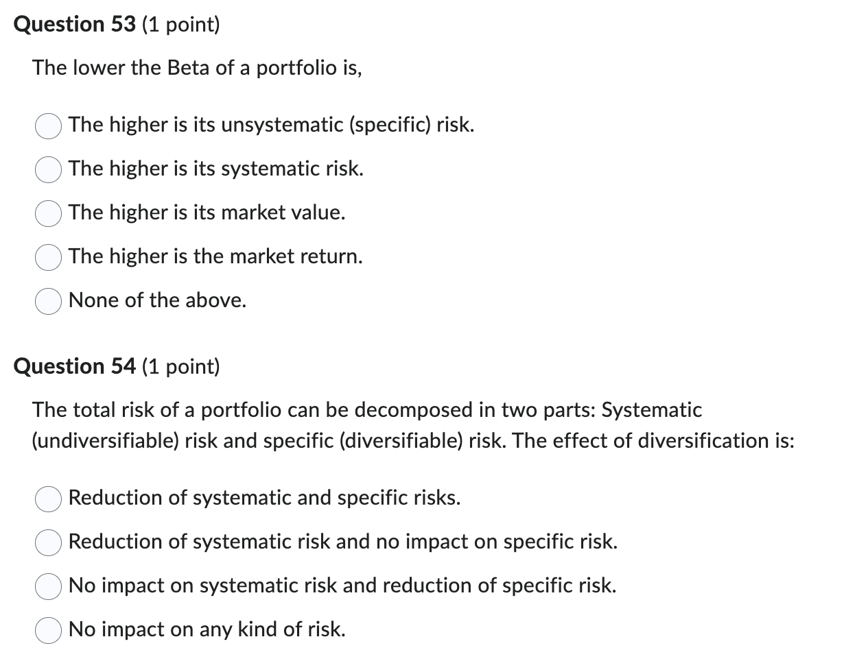 Solved The lower the Beta of a portfolio is, The higher is | Chegg.com