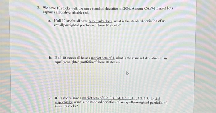 Solved We have 10 stocks with the same standard deviation of | Chegg.com