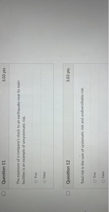 Solved Market risk is also called: 1) systematic risk, II) | Chegg.com