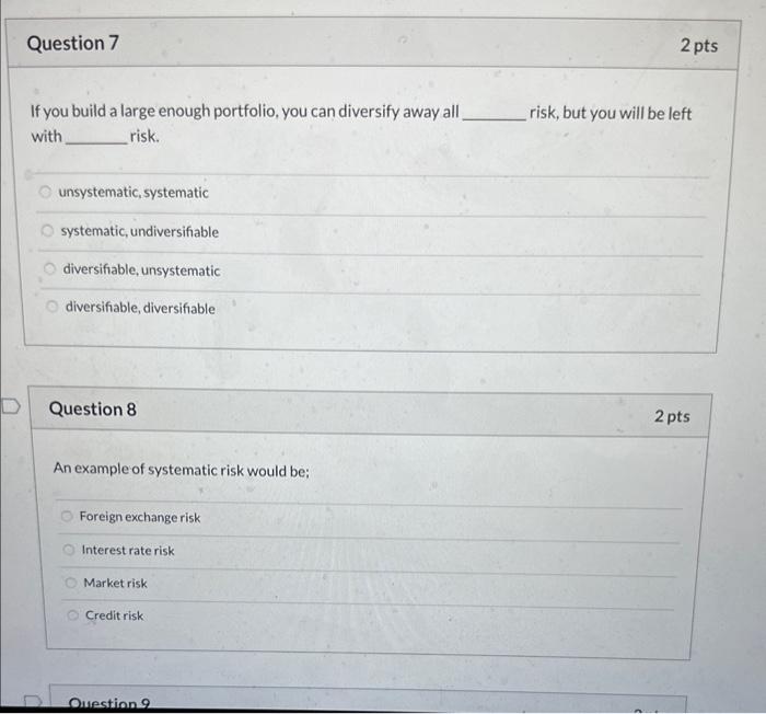 Solved Systematic risk is the same as: Diversifiable Risk | Chegg.com