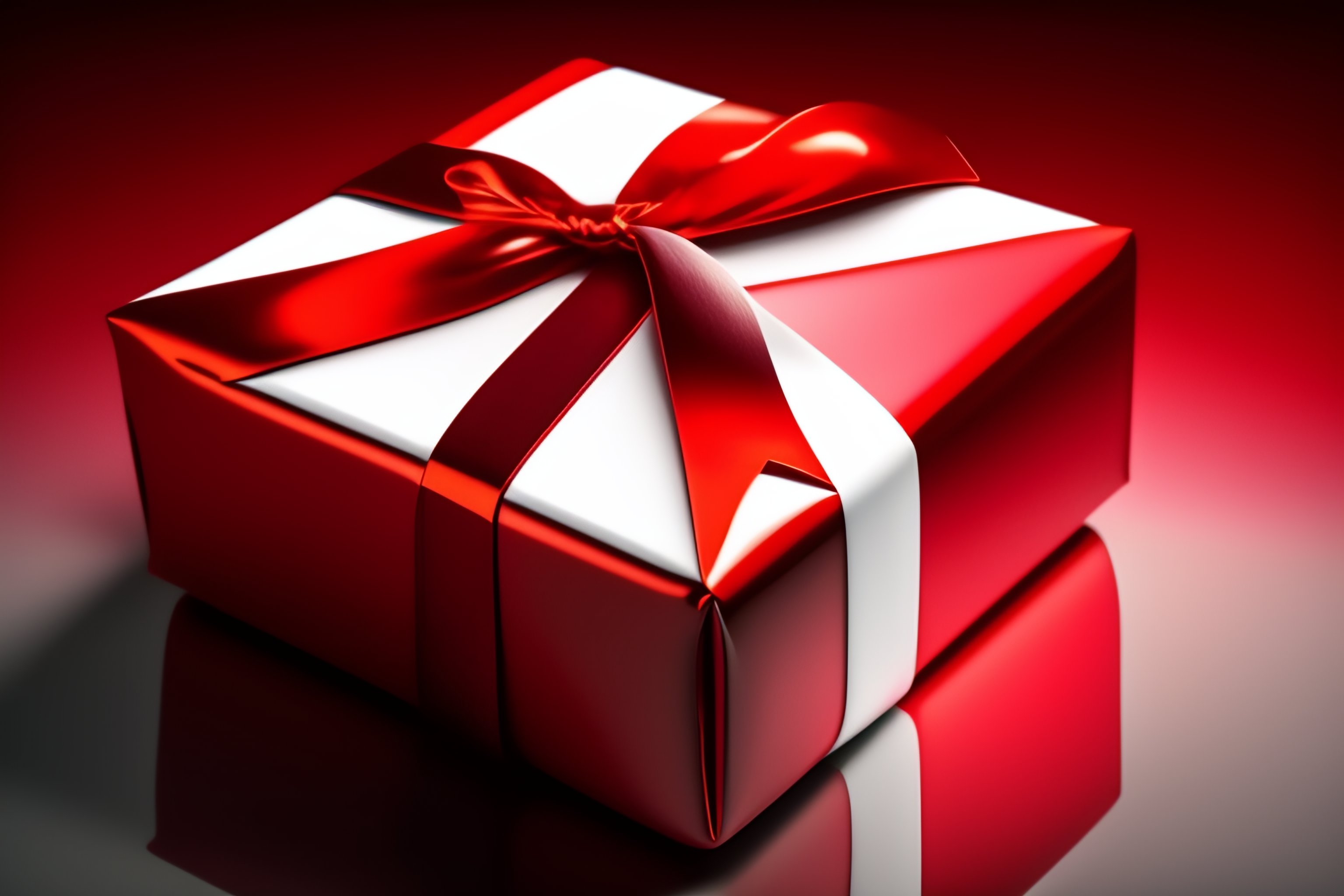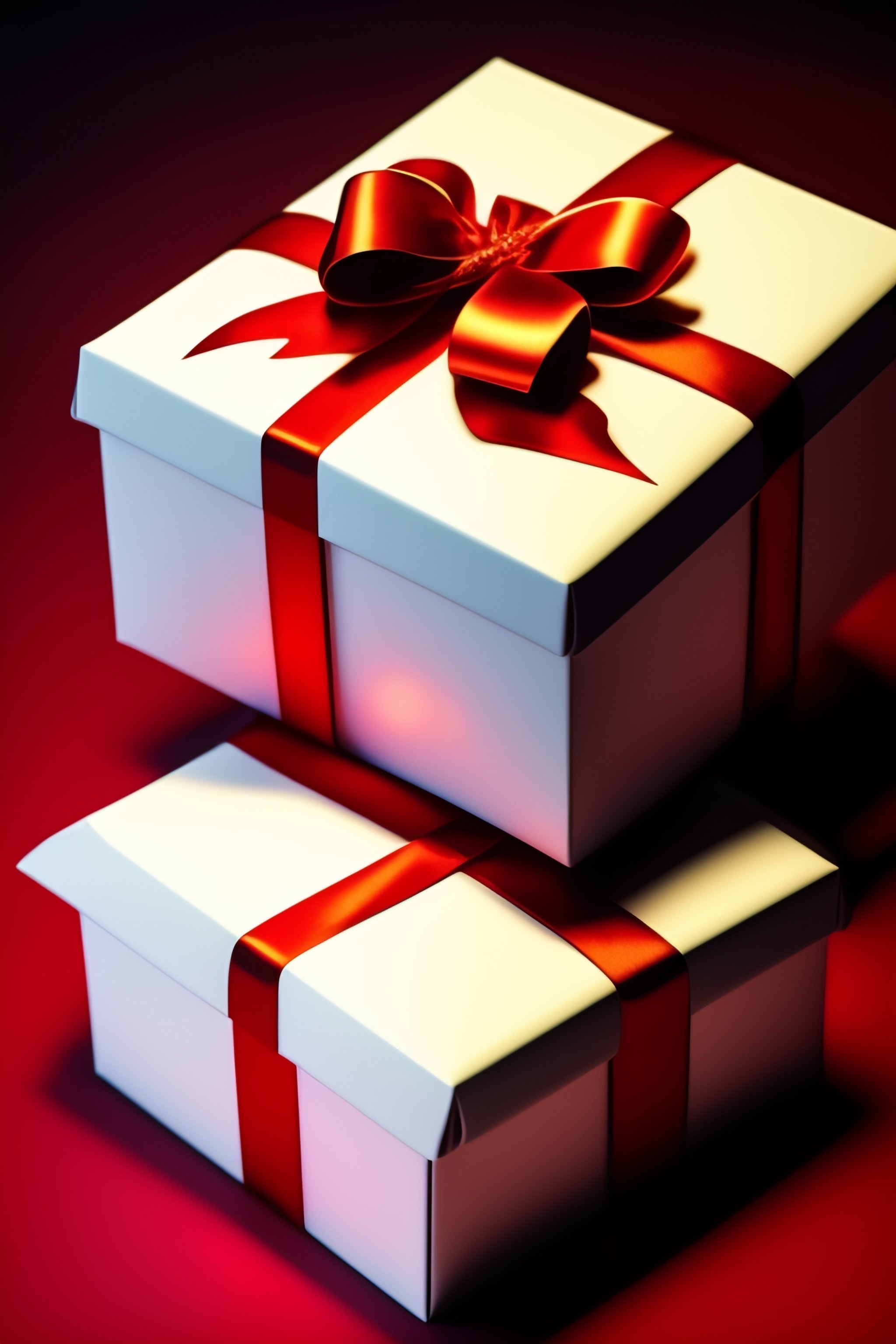 Lexica - Open gift white box with glow inside, red undone ribbon
