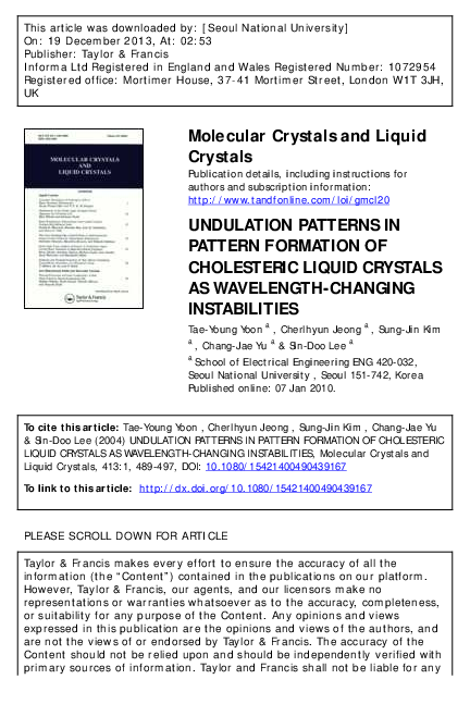 (PDF) Undulation Patterns in Pattern Formation of Cholesteric Liquid ...