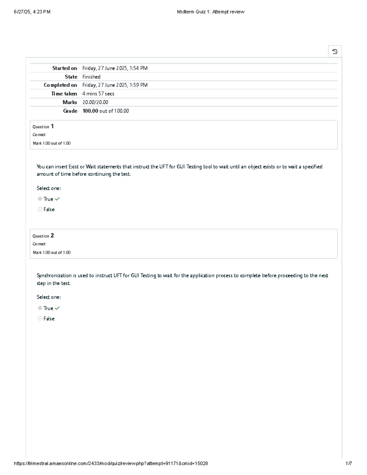 Unified Functional Testing (UFT) Midterm Quiz 1 Review - Studocu