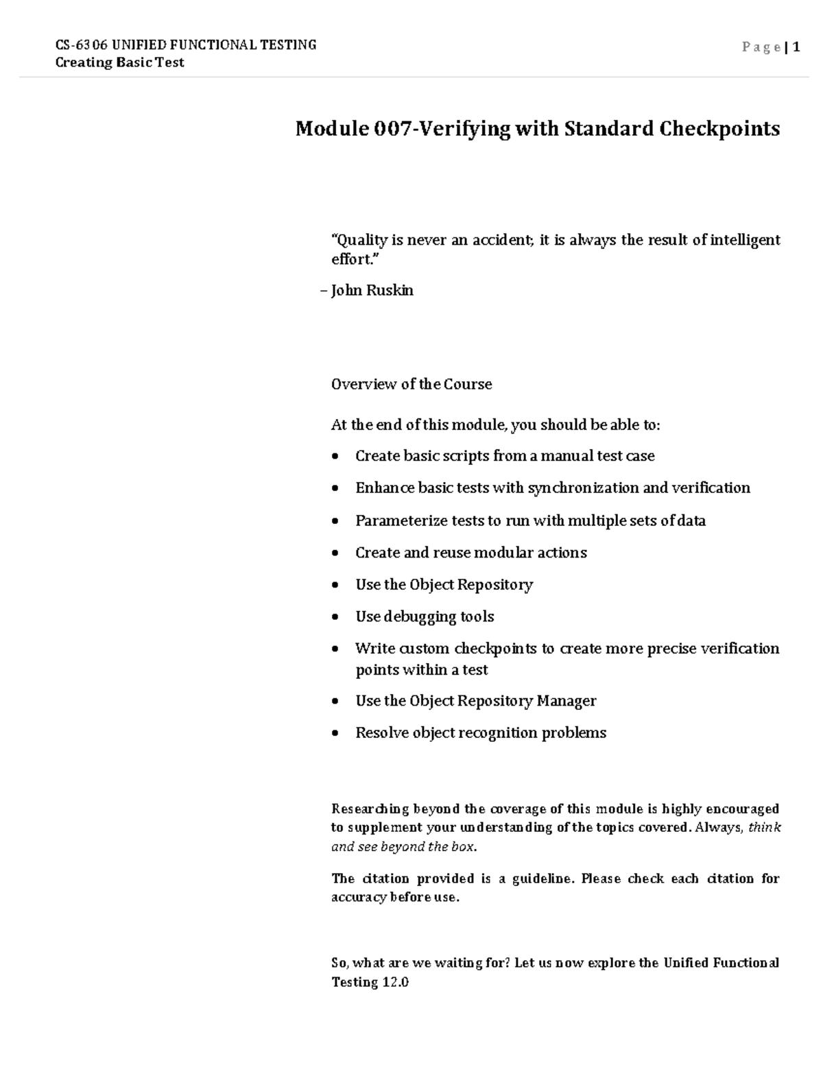 UNIFIED FUNCTIONAL TESTING Module 7: Verifying with Standard ...