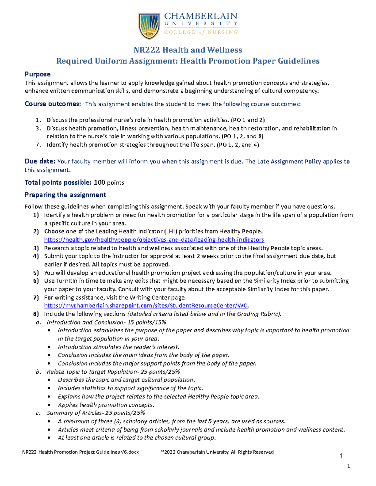 NR‐222 HEALTH AND WELLNESS REQUIRED UNIFORM ASSIGNMENT HE.docx ...