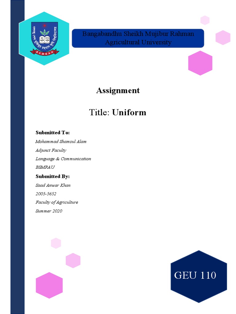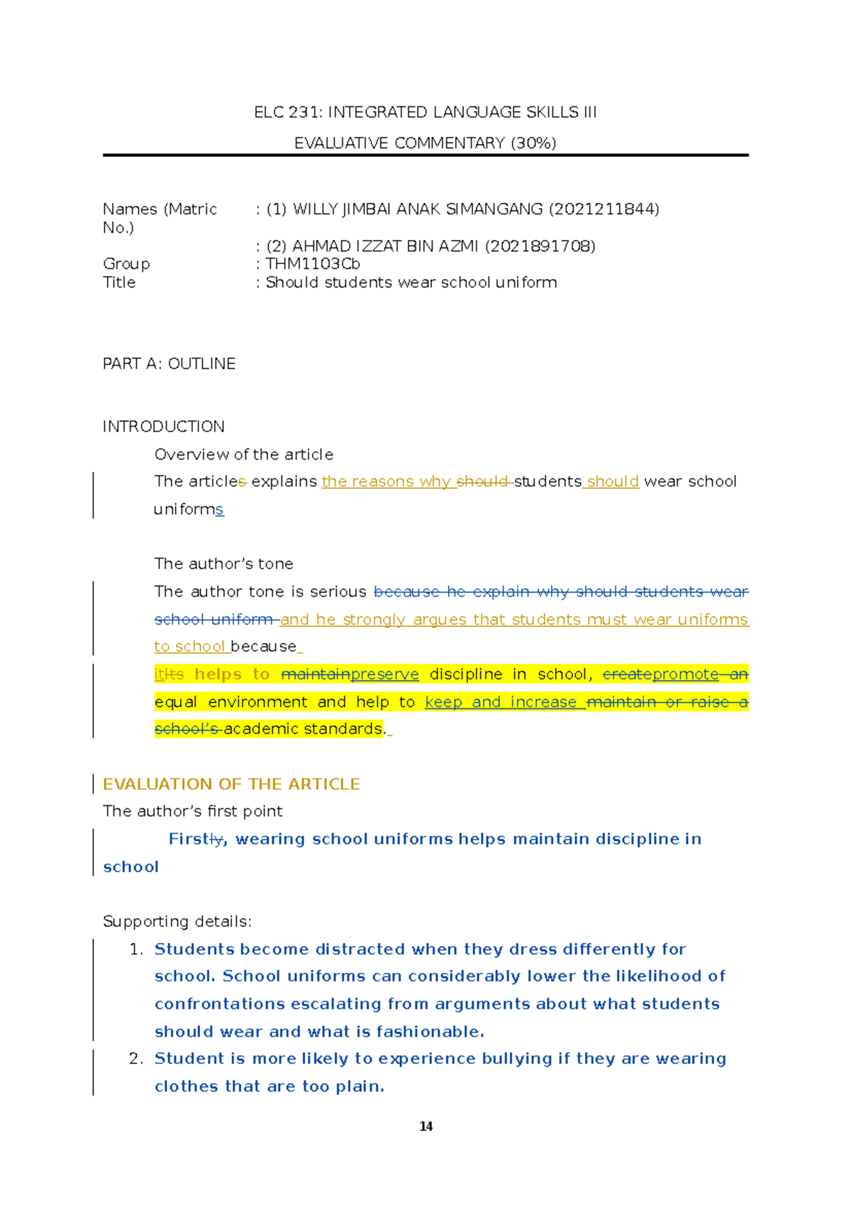 E) School uniform - assignment - ELC 231: INTEGRATED LANGUAGE SKILLS ...