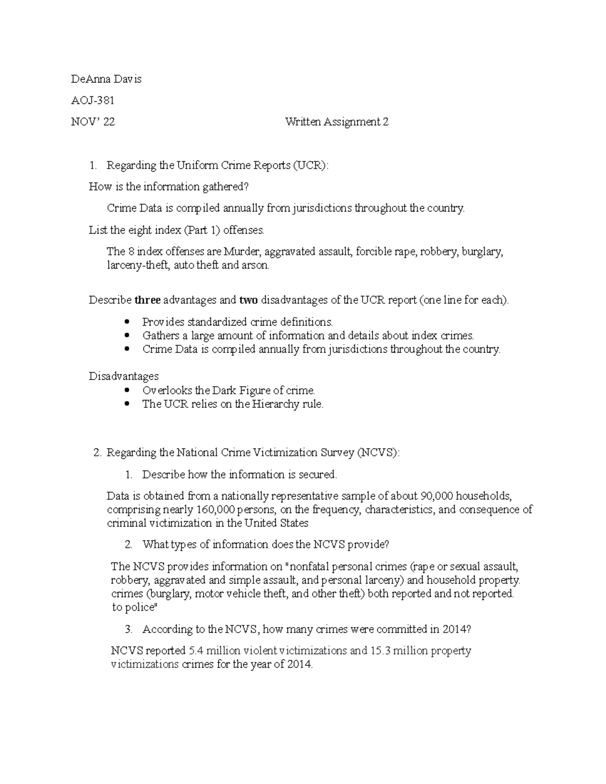 AOJ wa2 - full assignment - DeAnna Davis AOJ- NOV’ 22 Written ...