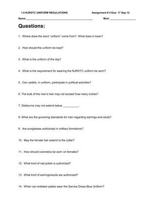 NS1 Assignment # 4 Uniform Regulations Questions | PDF