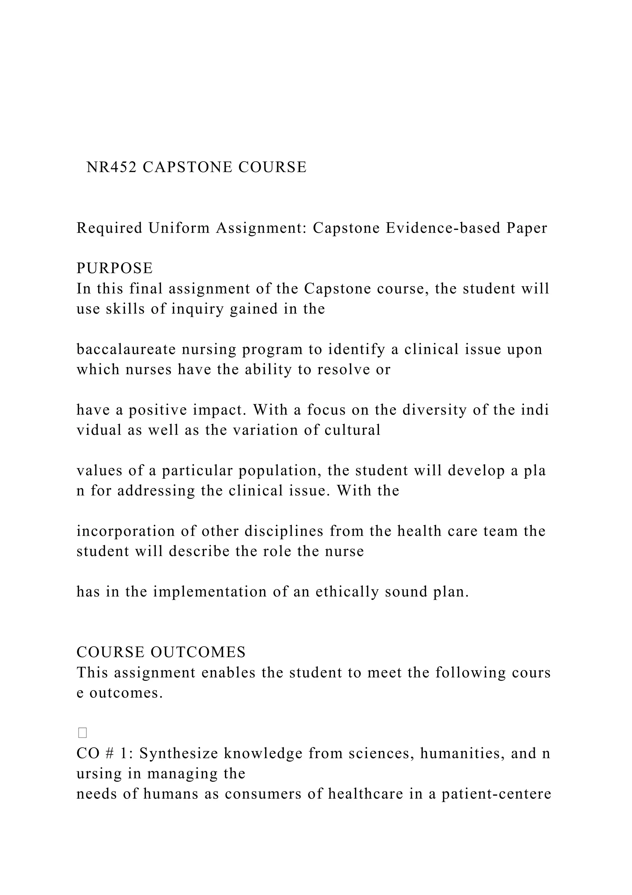 NR452 CAPSTONE COURSE Required Uniform Assignment Cap.docx