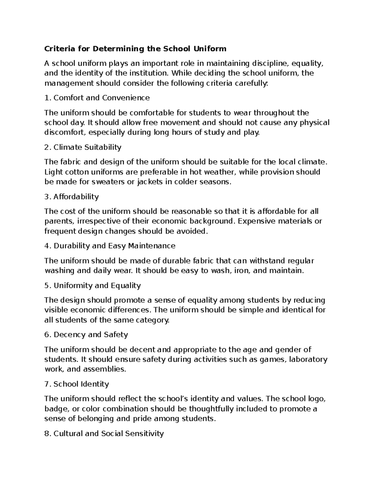 Criteria for Determining School Uniforms: Assignment Answer - Studocu