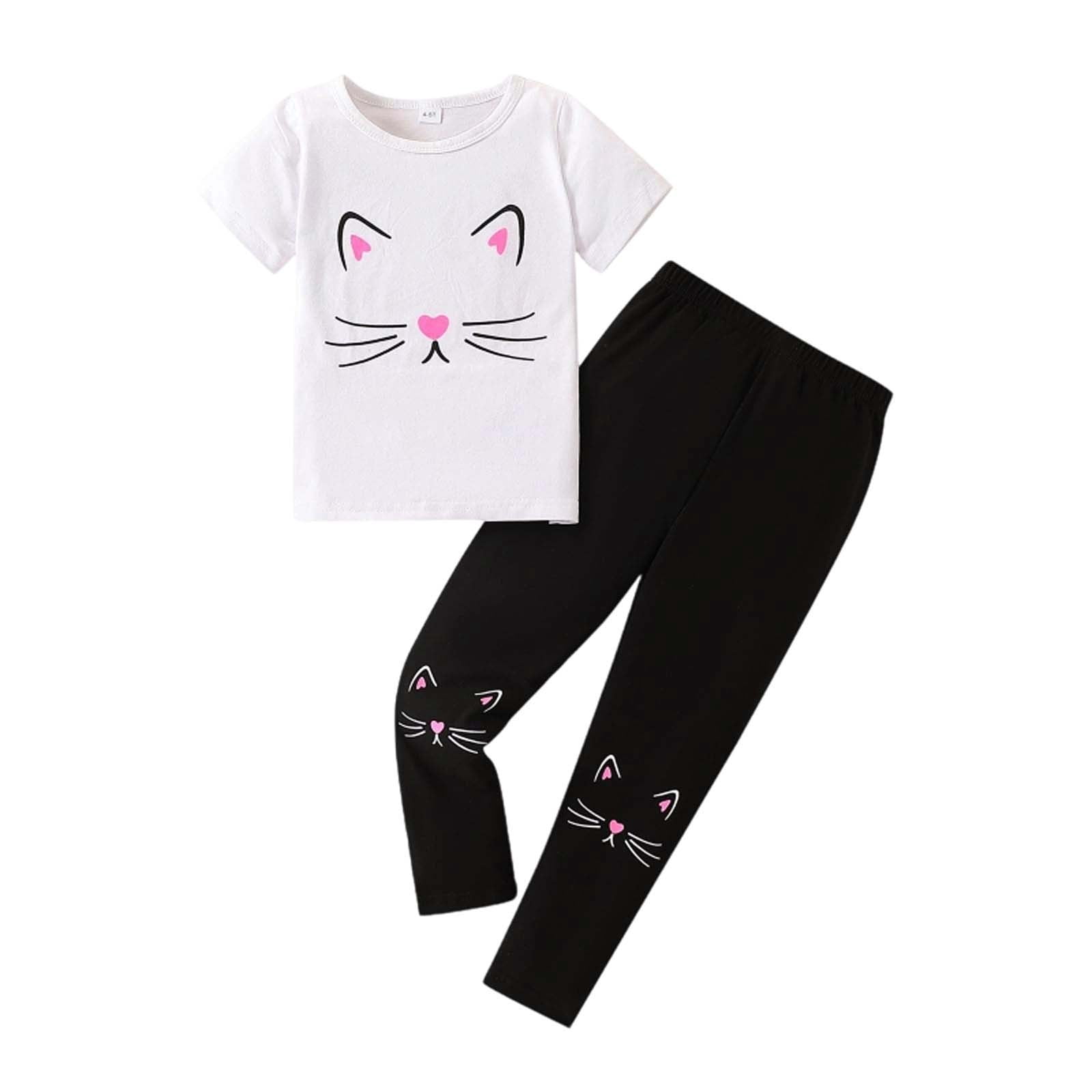 CAIVO Children Girls Cat Pattern O-Neck Short Sleeve T-Shirts With ...