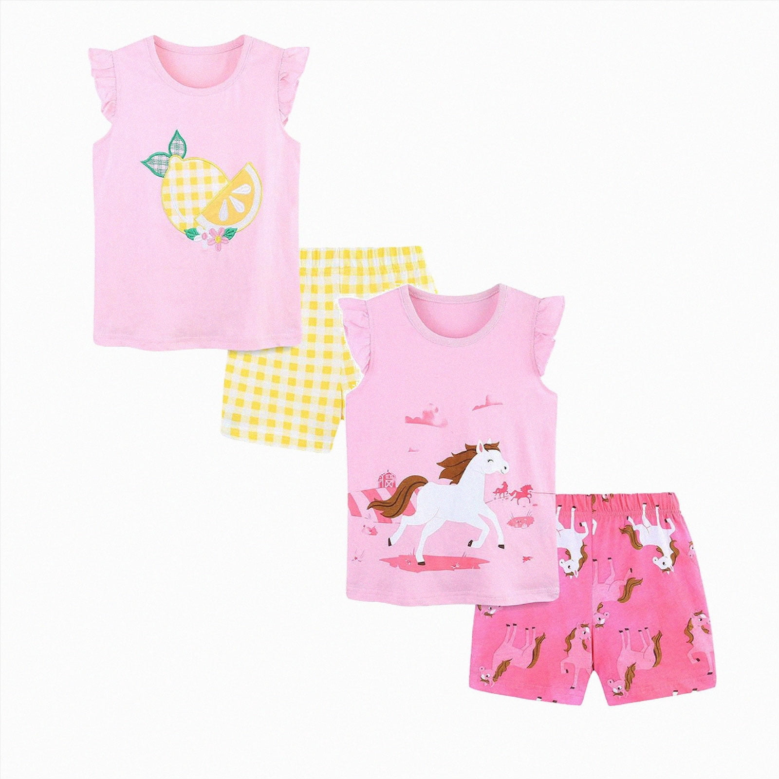 CAUYDY Toddler Girl Summer Clothes Cute Animals Top & Shorts Plaid ...