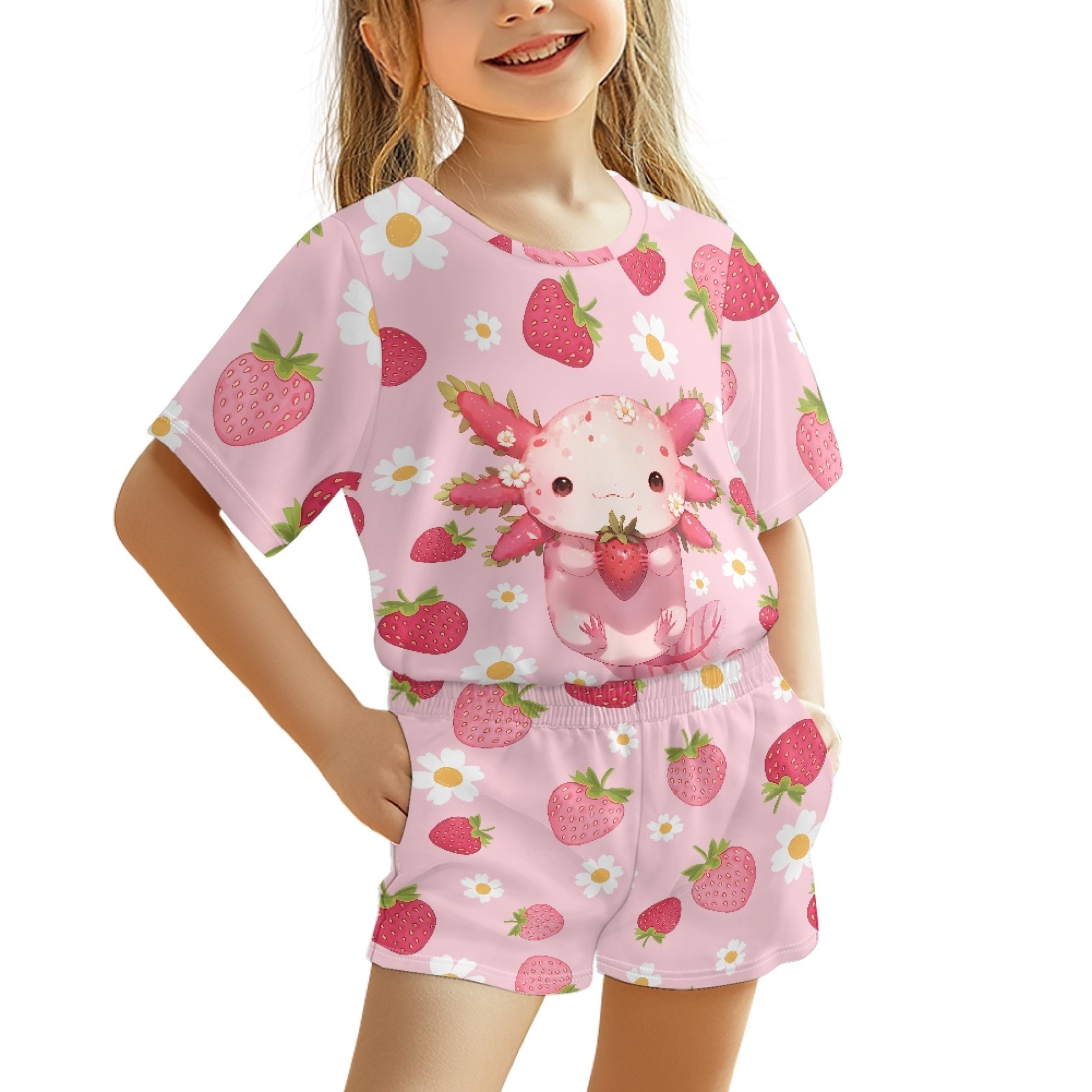 Chririnla Salamander Strawberry Pattern Kids Outfit Stretch Crew Neck ...