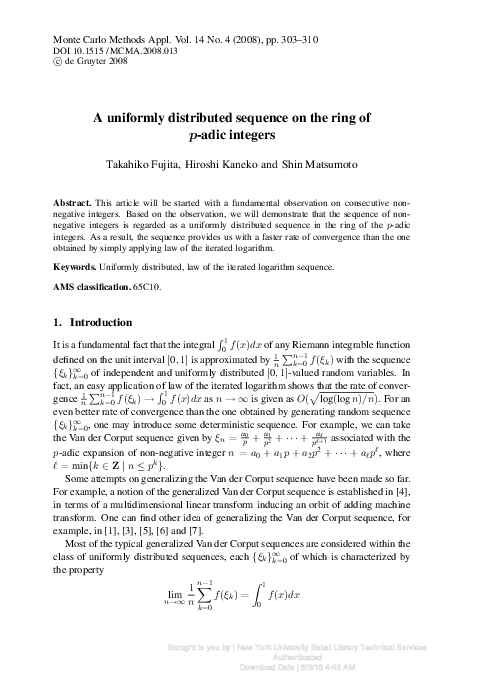 (PDF) A uniformly distributed sequence on the ring of p-adic integers
