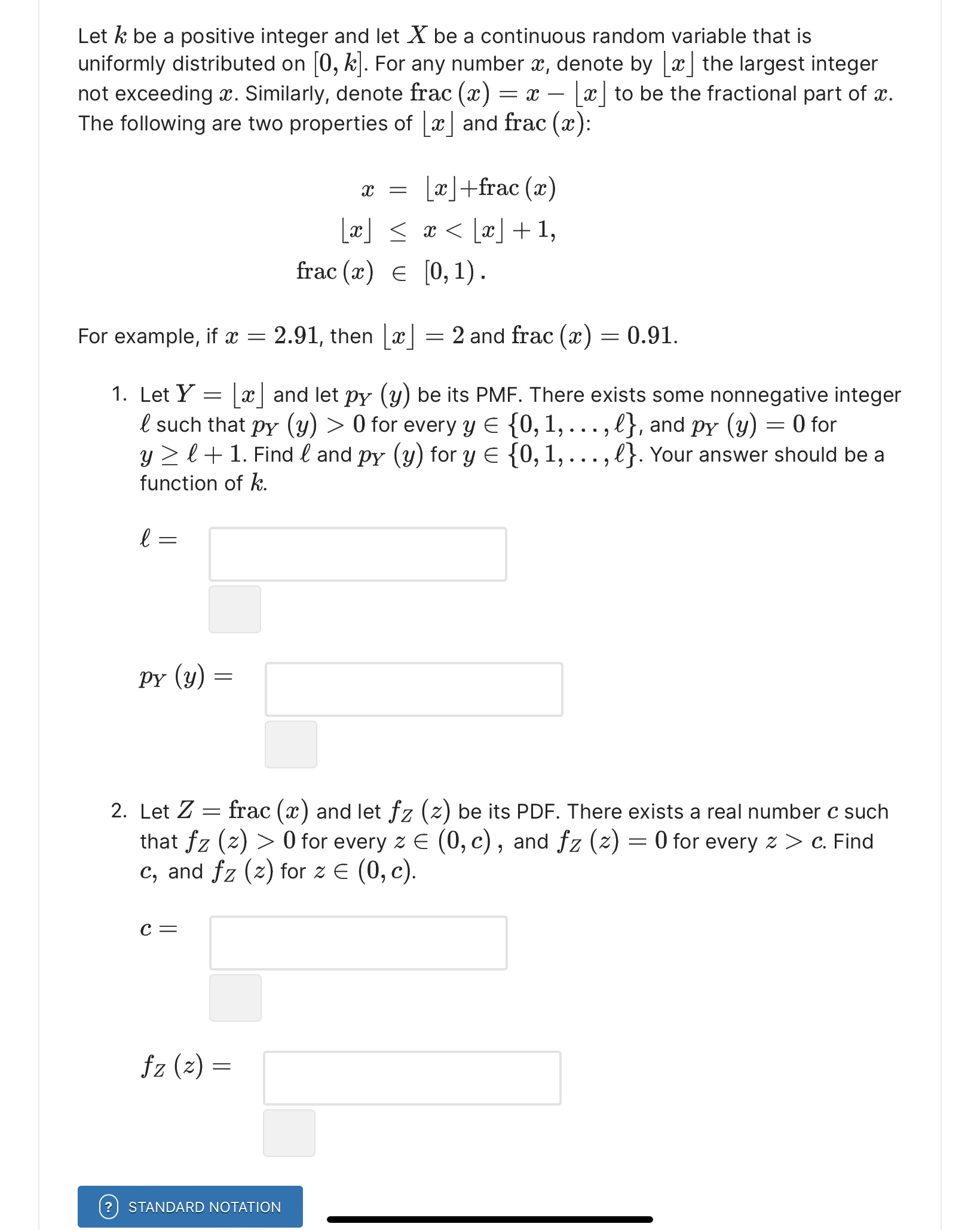 Uniform Distribution Question Uniform Distribution Probability