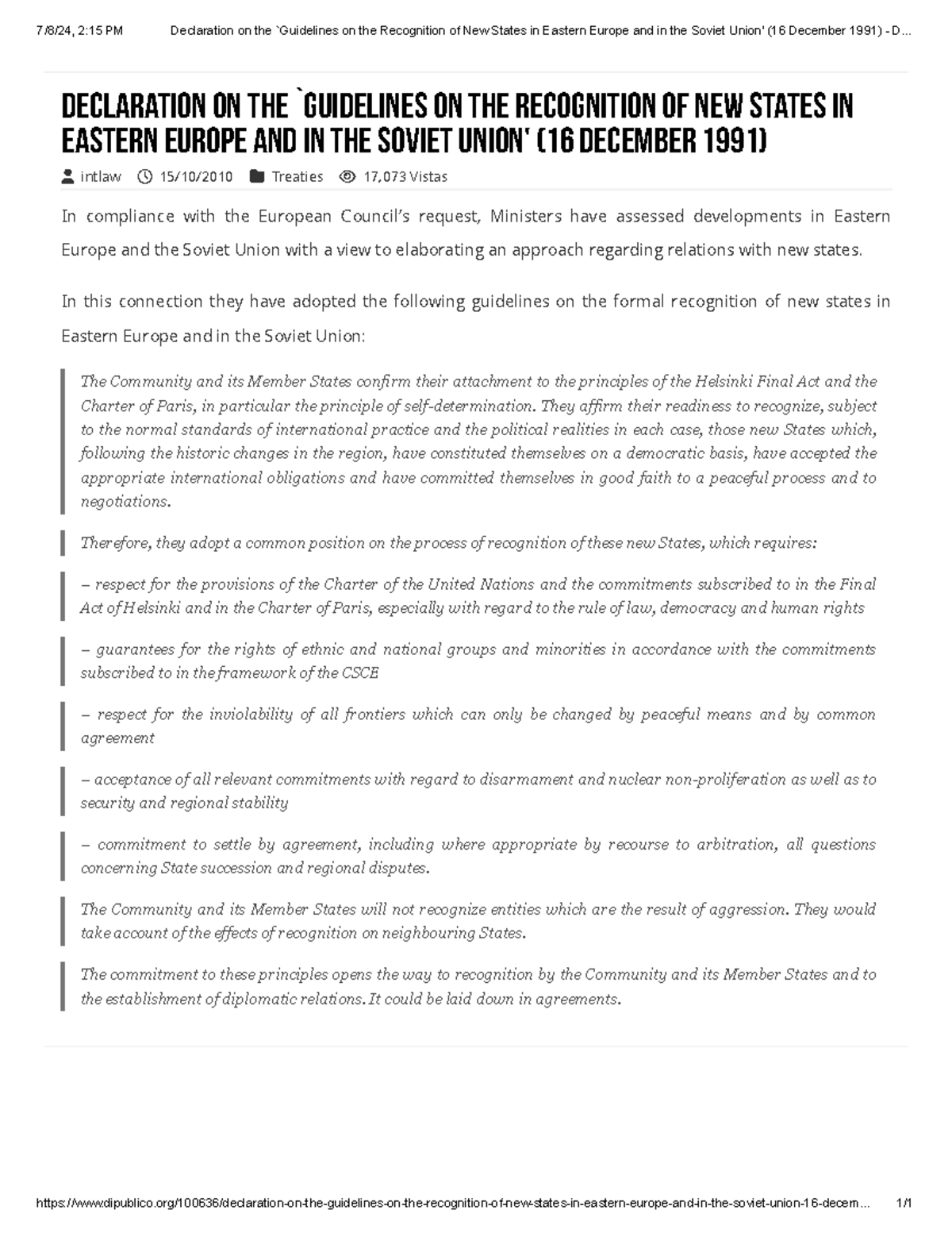 Guidelines on the Recognition of New States in Eastern Europe and in ...