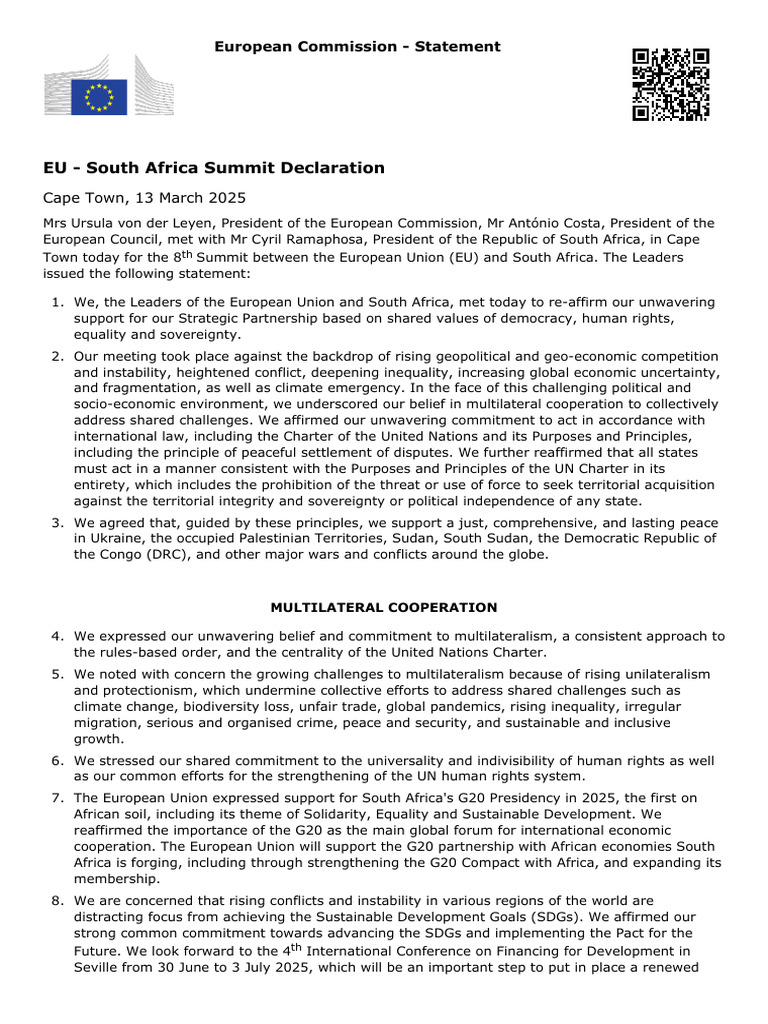 EU-South Africa Summit 2025 Declaration | PDF | European Union | Treaty ...