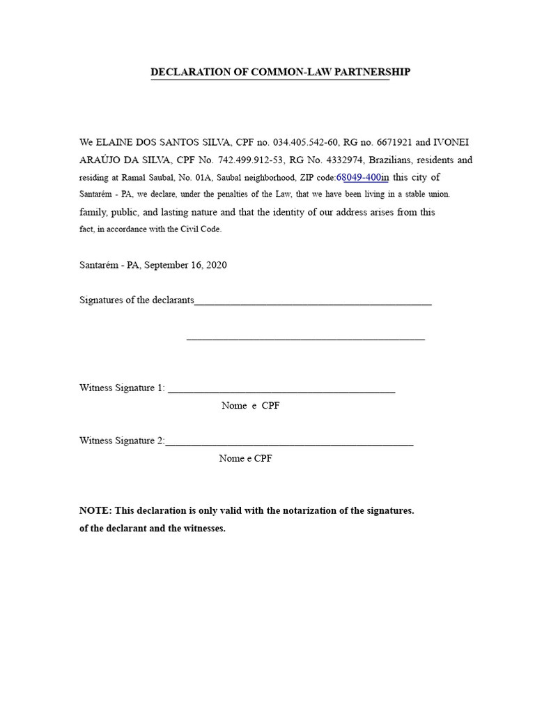 Statutory Declaration of Common-Law Union | Permanent Residence (United ...