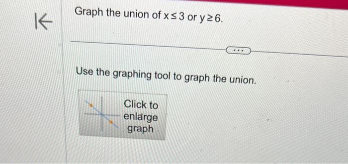 Solved Graph the union of x≤3 or y≥6. Use the graphing tool | Chegg.com