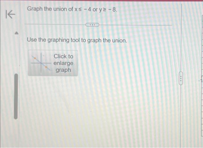 Solved Graph the union of x ≤ -4 or y≥ - 8. Use the graphing | Chegg.com