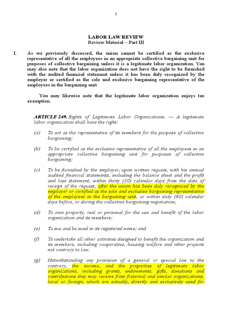 Labor Organization Rights and Compliance | PDF | Collective Bargaining ...