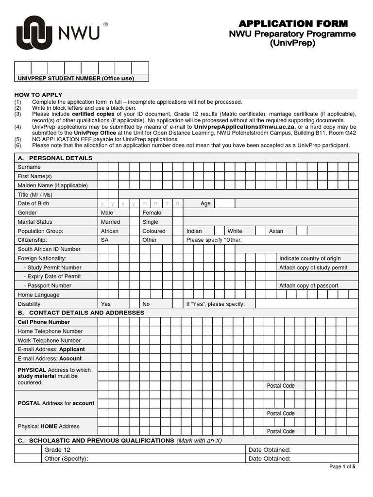 Nwu Uniprep Application Form 2020 - Fill and Sign Printable Template Online