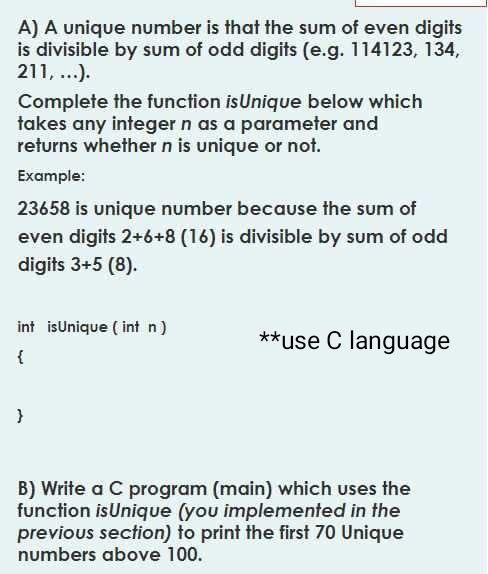 Solved A) A unique number is that the sum of even digits is | Chegg.com