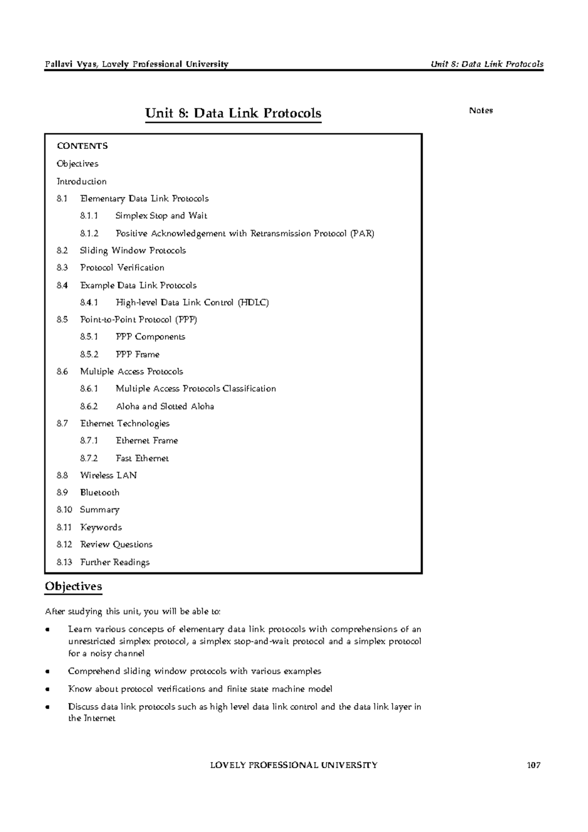 Computer Networks chapter 8 - Unit 8: Data Link Protocols Unit 8: Data ...