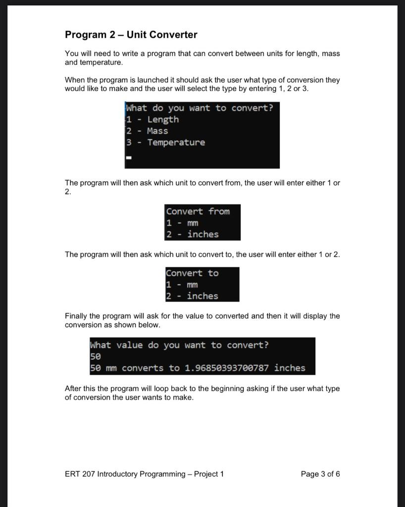 Solved Program 2 - Unit Converter You will need to write a | Chegg.com
