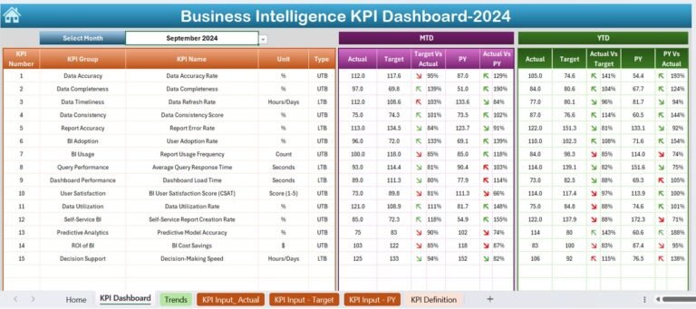 Business Intelligence KPI Dashboard in Excel - PK: An Excel Expert