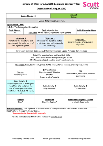 GCSE AQA Biology Lessons - Organisation - Whole Topic Pack | Teaching ...