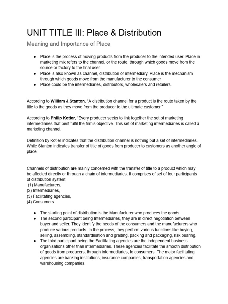UNIT TITLE III - Place & Distribution | PDF | Goods | Retail