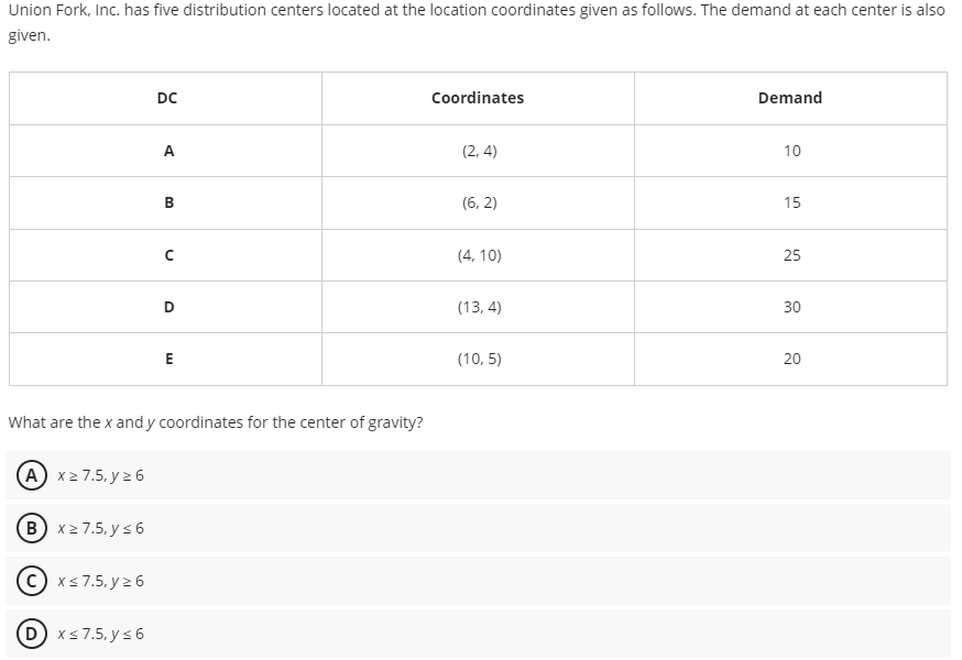 Solved Union Fork, Inc. has five distribution centers | Chegg.com