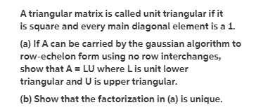 Solved A triangular matrix is called unit triangular if it | Chegg.com
