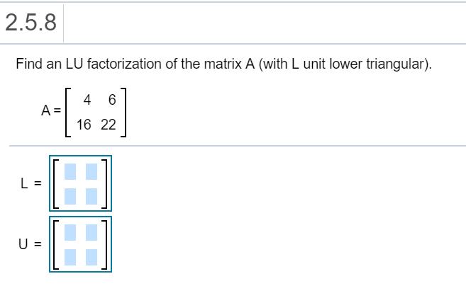 Solved 2.5.8 Find an LU factorization of the matrix A (with | Chegg.com