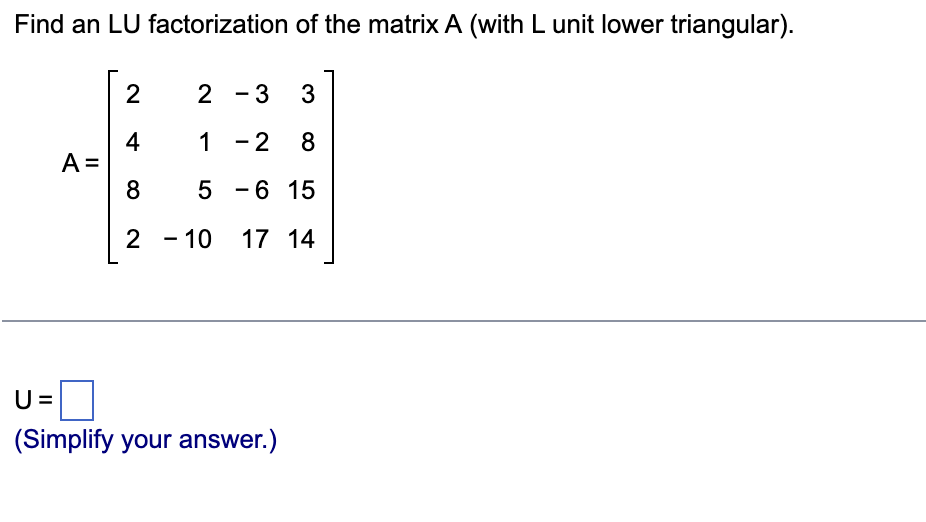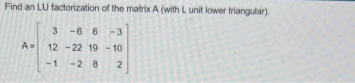 Solved Find an LU factorization of the matrix, with L | Chegg.com