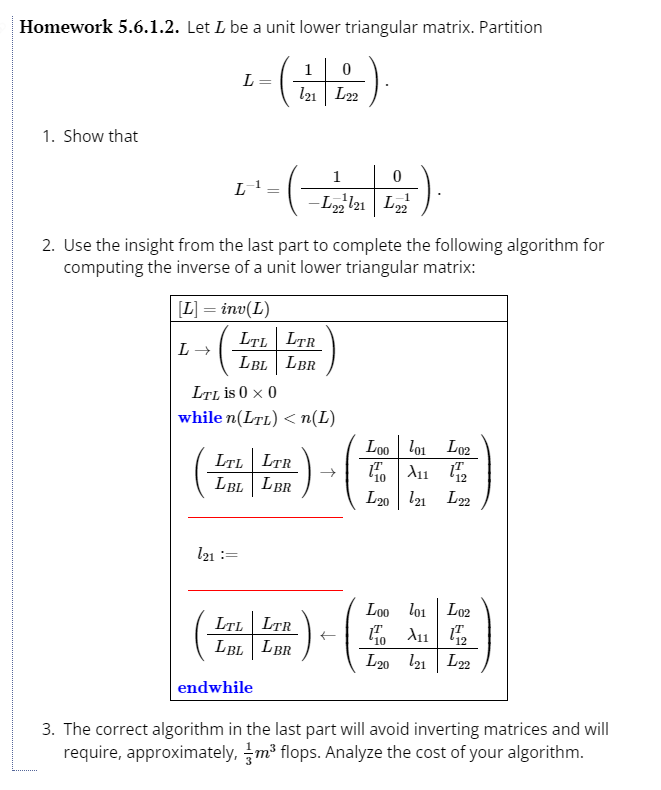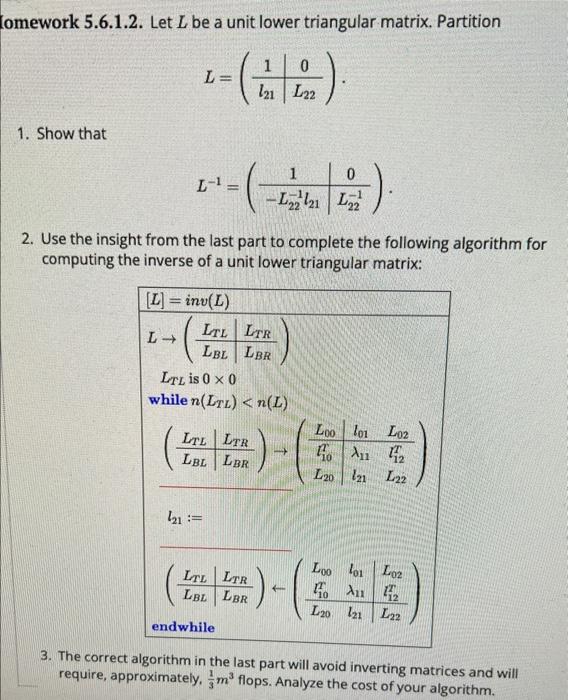Solved Homework 5.6.1.2. Let L be a unit lower triangular | Chegg.com