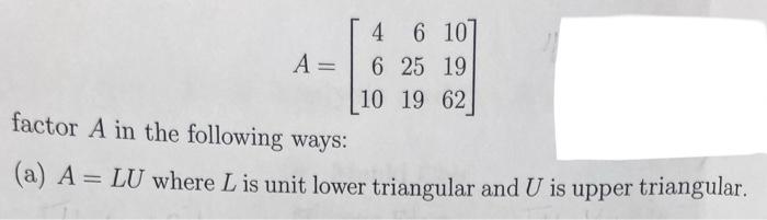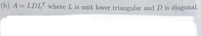Solved (b) A=LDLT where L is unit lower triangular and D is | Chegg.com