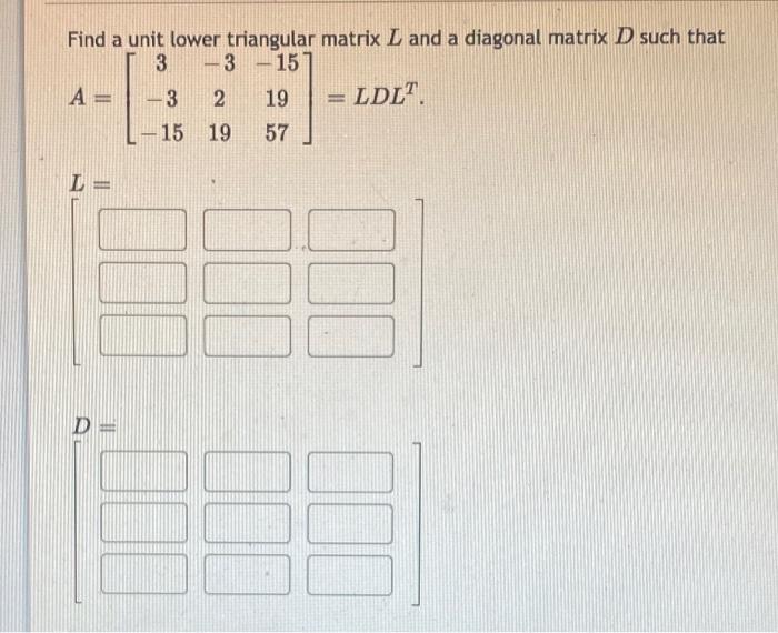 Solved Find a unit lower triangular matrix L and a diagonal | Chegg.com