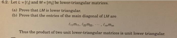 Solved 6.2. Let L = [] and M = [m] be lower-triangular | Chegg.com