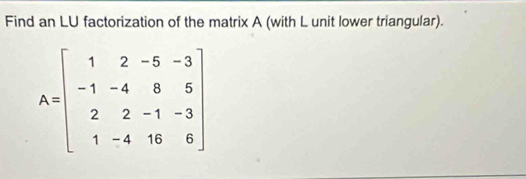 Solved Find an LU factorization of the following matrix | Chegg.com