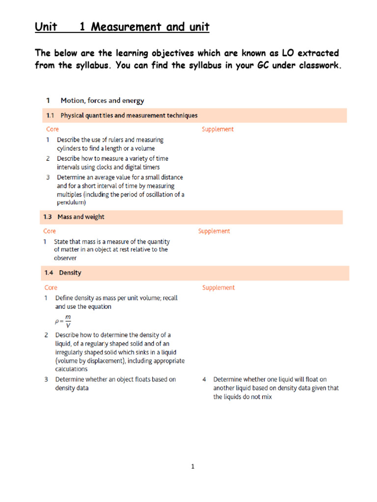 Day-01-units-and-measurements-part-1-study notes - Study Notes: Units ...
