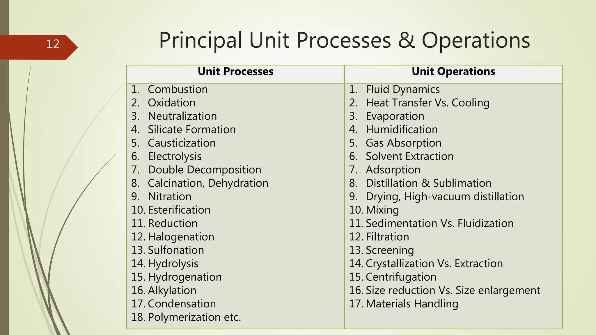 PPT - Overview of Unit Operations and Processes in Chemical Engineering ...