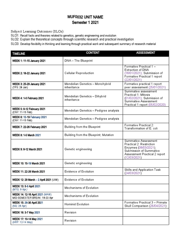 Unit 2 Timeline S1 2021 08012021 | PDF | Genetics | Evolution