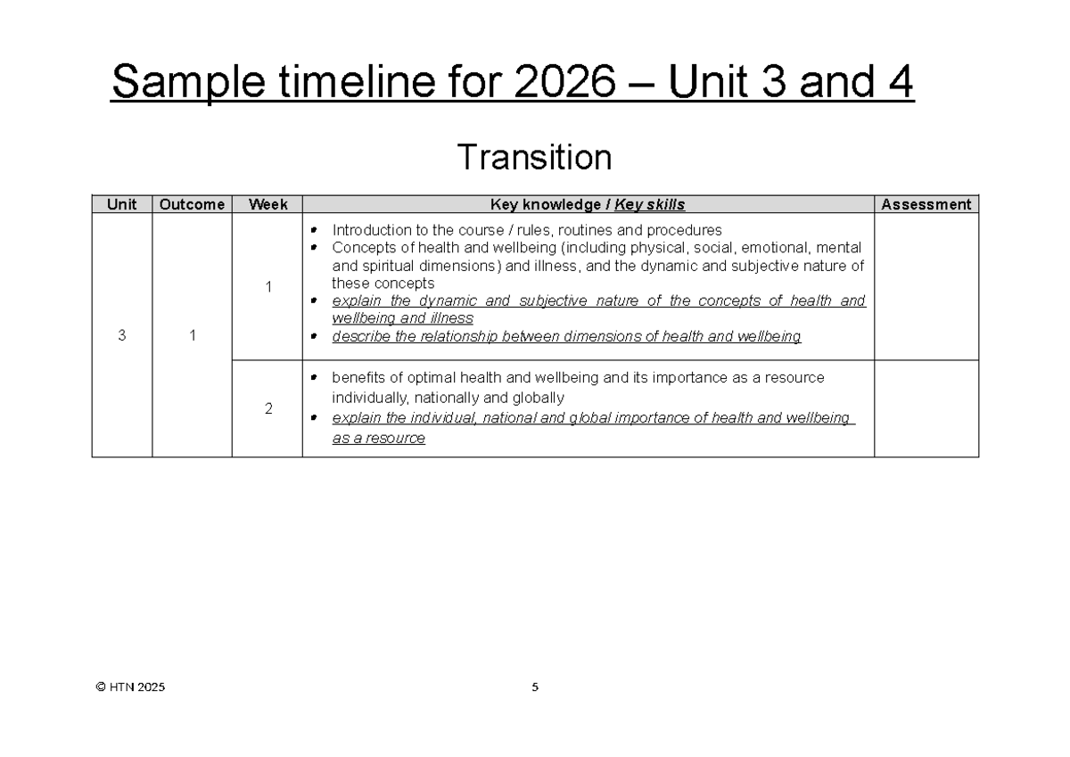 Unit 3 & 4 HHD Timeline Overview for 2026 Transition - Studocu